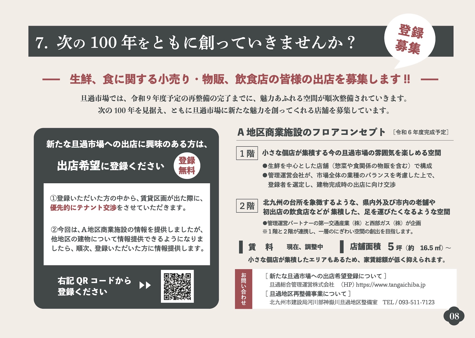 旦過市場では、生まれ変わる商業施設の完成を見据え、新たな魅力を創出できる店舗の募集を開始しました。